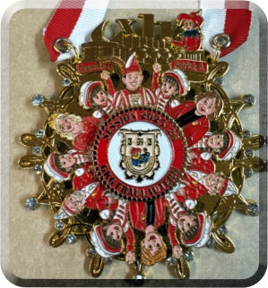 ᴏʀᴅᴇɴꜱᴠᴏʀꜱᴛᴇʟʟᴜɴɢ IndiesemJahrdürfenwirvollerStolzunserenneuenSessionsordenpräsentieren–einganz besonderer, denn wir feiern 7x11 Jahre GKG Fraulautern! Obenstehtunserschönes Vereinshaus,dasHerzstückunseres Vereinslebens,indemallunsere Veranstaltungenstattfinden.DarübererstrahltingoldenenLetterndas„7x11“,unsergroßes Jubiläum, auf das wir mit Freude und Stolz zurückblicken dürfen. WieinjederSessiondarfnatürlichauchunserTillnichtfehlen–erzeigtaufdasJubiläum undverkörpertsodenkarnevalistischenGeistunddenHumor,derunsseitJahrzehnten begleitet.EinechterBlickfangistderdrehbareMittelteildesOrdens:Hierfindensichbekannte GesichterausunseremVerein–MitgliederdesVorstandes,unserestolzeGardeundals besonderesHighlightindiesemJahrunserStadtprinzenpaarAnuschkaI.undPatrickII.Sie allesymbolisierendasHerzunseresVereins–denZusammenhalt,dieFreudeunddie Leidenschaft, mit der wir den Karneval leben. DasDrehbarestehtsinnbildlichfürdieBewegung,LebendigkeitundVielfalt,dieunseren Verein ausmachen – immer in Bewegung, immer im Takt des Karnevals, immer gemeinsam. InderMittedesOrdensprangtstolzunserVereinswappen,umrahmtvoneinemkunstvoll verschnörkeltenDesignundfeinenSteinchen,diedemOrdenseinenfestlichenGlanz verleihen. EinbesonderesDetail:Wergenauhinschaut,entdecktimHintergrundausgetanzteHerzen– sie stehen für unser Motto: „Mein Herz tanzt!“. DieserOrdenvereintalles,wasunserenVereinausmacht:Tradition,Lebensfreude, Gemeinschaft und ein Herz, das im Rhythmus des Karnevals schlägt. Danke Aurora Kiermasch, der Orden ist spitze!